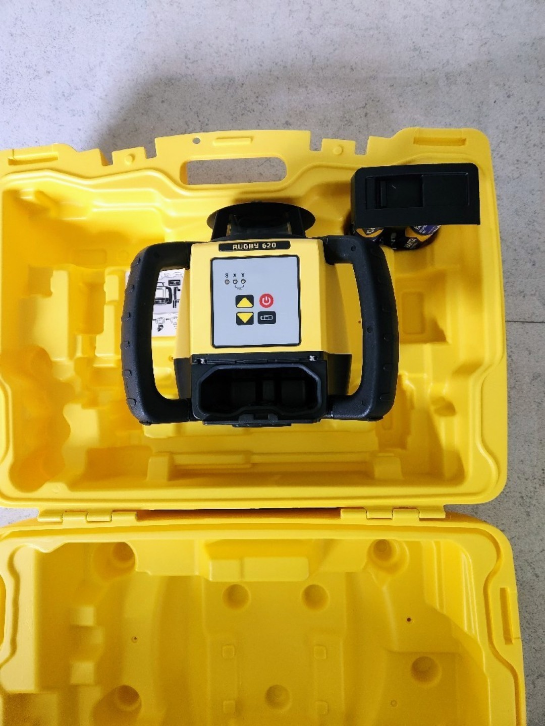 En rotasjonslaser er en roterende laser som gir en horisontal rett linje selv om underlaget er ujevnt.