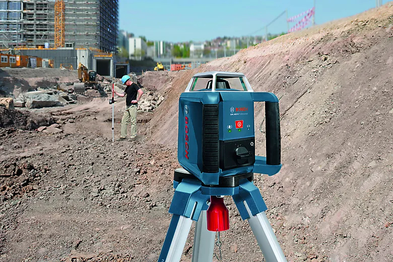 En rotasjonslaser er en roterende laser som gir en horisontal rett linje selv om underlaget er ujevnt.