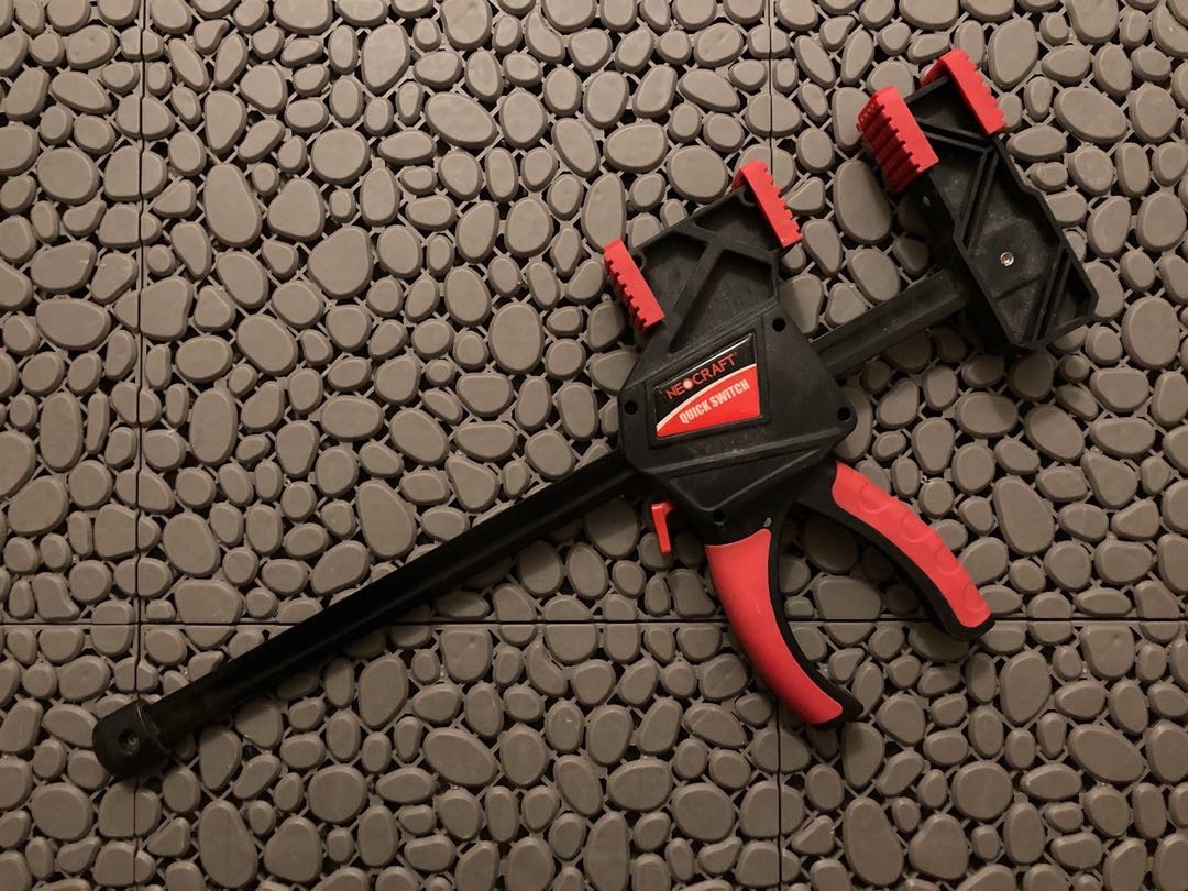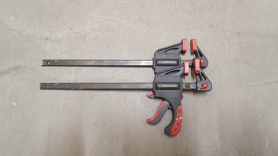 Verktøy for å holde materialer fast under arbeid, som ved liming eller saging.