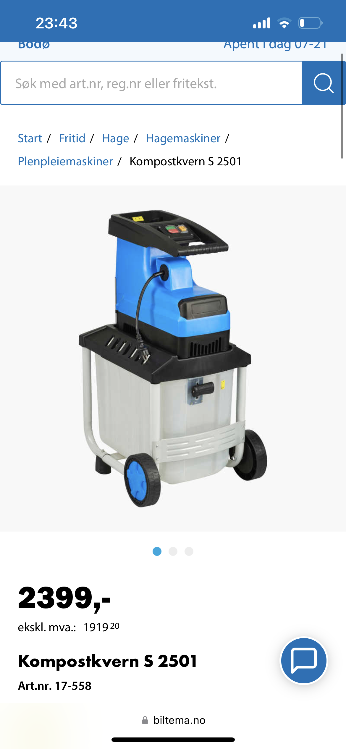 Du kan leie kompostkvern i Nordland Fylke for ca. 150 kr per dag eller 500 kr for en uke.