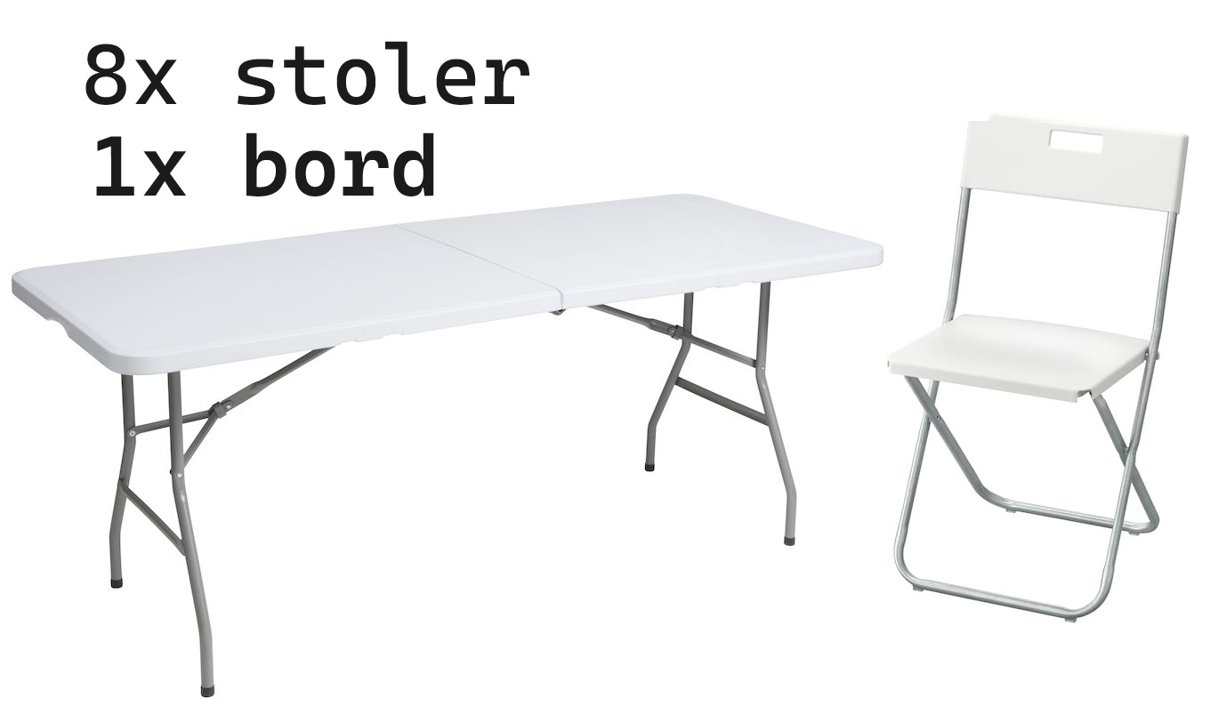 Møbler til festlige anledninger! Lei bord, stoler og annet utstyr som gjør festen din uforglemmelig.