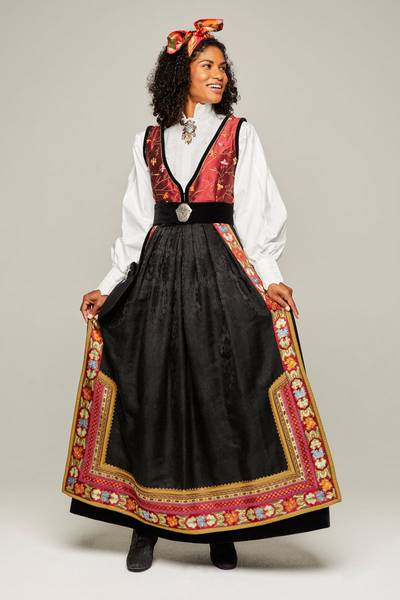 Du kan leie bunad for dame i Lier for ca. 1 500 kr per dag eller 6 000 kr for en uke.
