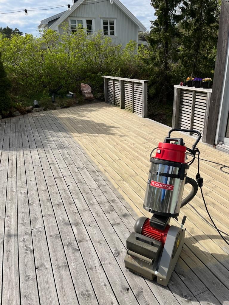 Du kan leie terrassebørste for ca. 200 kr per dag eller 750 kr for en uke.