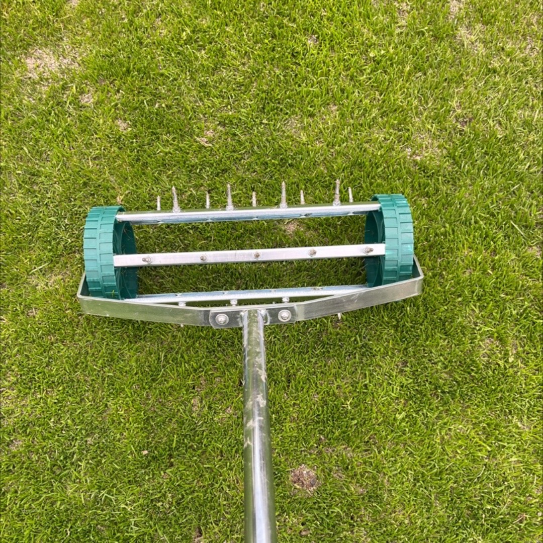 Verktøy for å lufte plenen ved å lage små hull i gresset for bedre vann- og næringsopptak. Perfekt for å vedlikeholde en sunn plen.
